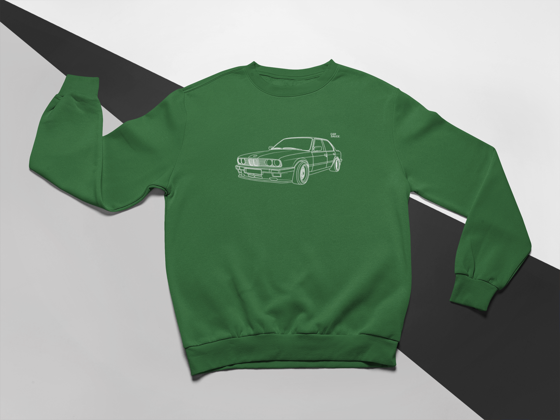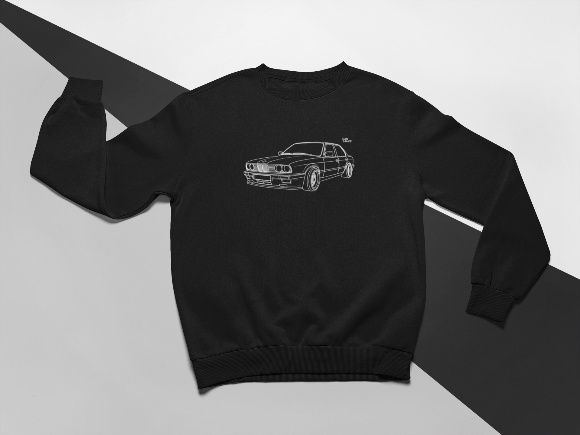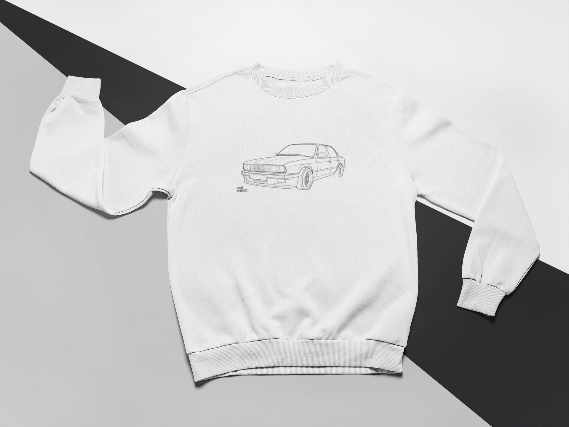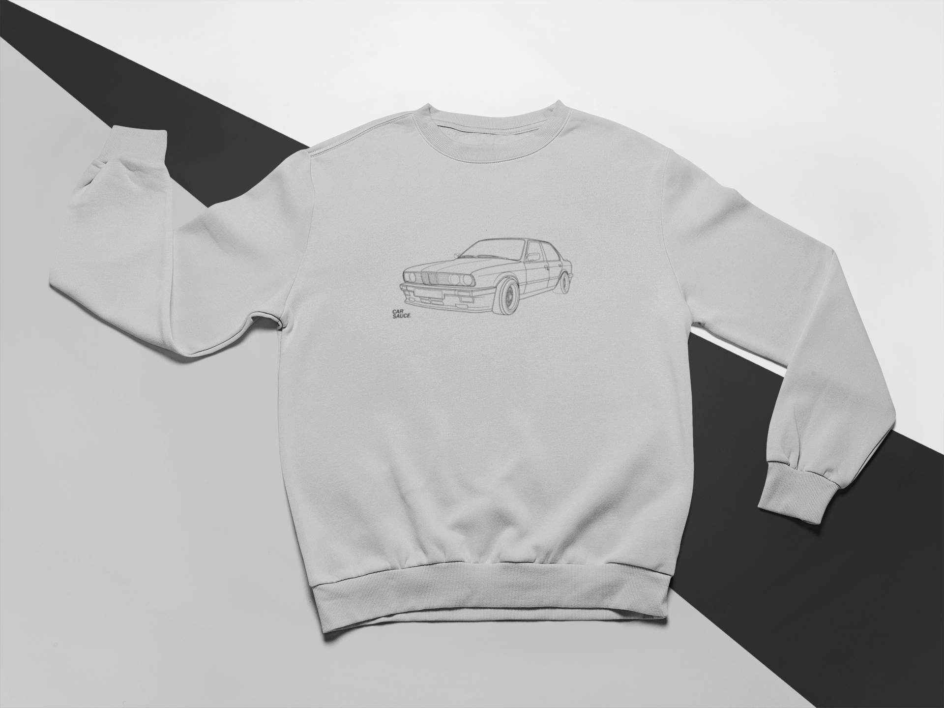 Inspired by automotive culture. With the E30 Sedan sweatshirt , you’re going for a classic look with a splash of originality. CAR SAUCE. – your go-to automotive hoodie for any occasion. A true petrolhead embraces the car spirit even when he is not driving: this statement hoodie will quickly become your second skin, made of high quality 80% Cotton, 20% Polyester fabric.
